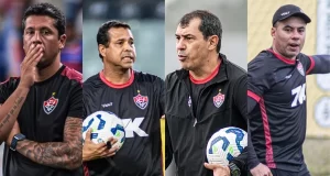 O Vitória é o time que mais mudou de treinador nesta edição do Brasileirão. Em 24 rodadas, já foram quatro trocas de comando, a...