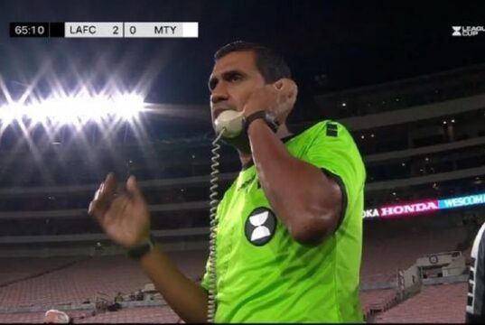 Árbitro usa telefone do século passado para falar com VAR; veja